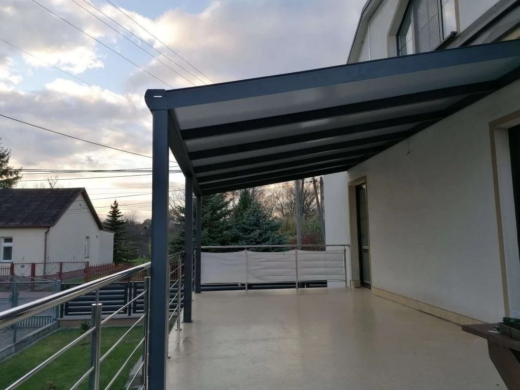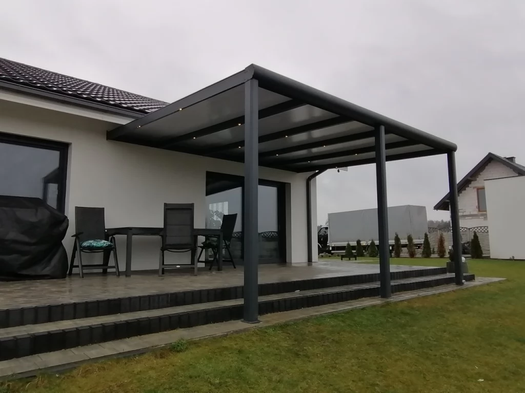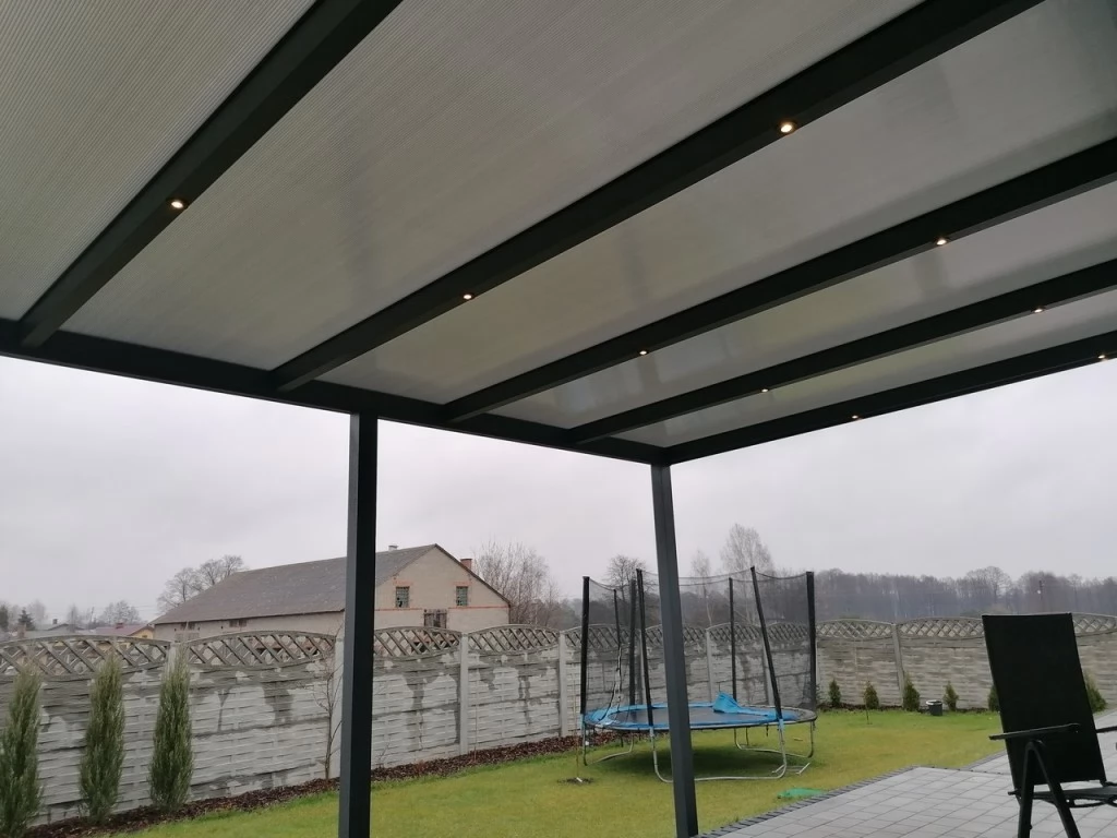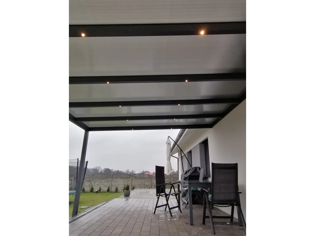 Nowoczesne aluminiowe zadaszenie Modern PRO jest wykonane z grubych profili aluminiowych oraz płyt poliwęglanowych o grubości 16mm.