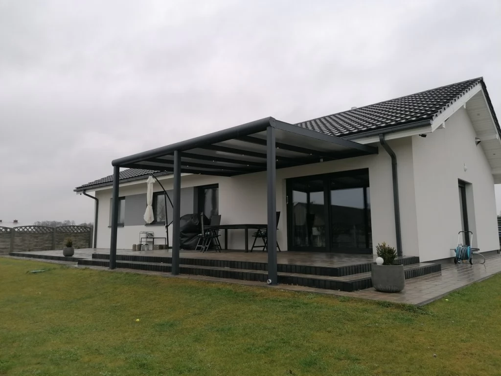 Możliwość dostawienia przeszklonego systemu przesuwnych ścian tworząc ogród zimowy