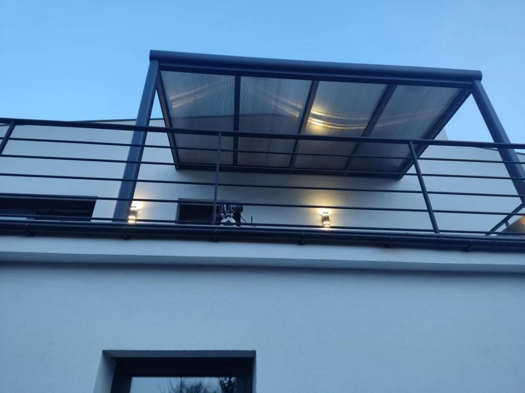 Nowoczesne aluminiowe zadaszenie Modern PRO jest wykonany z grubych profili aluminiowych oraz szkła laminowanego hartowanego 9,14mm.