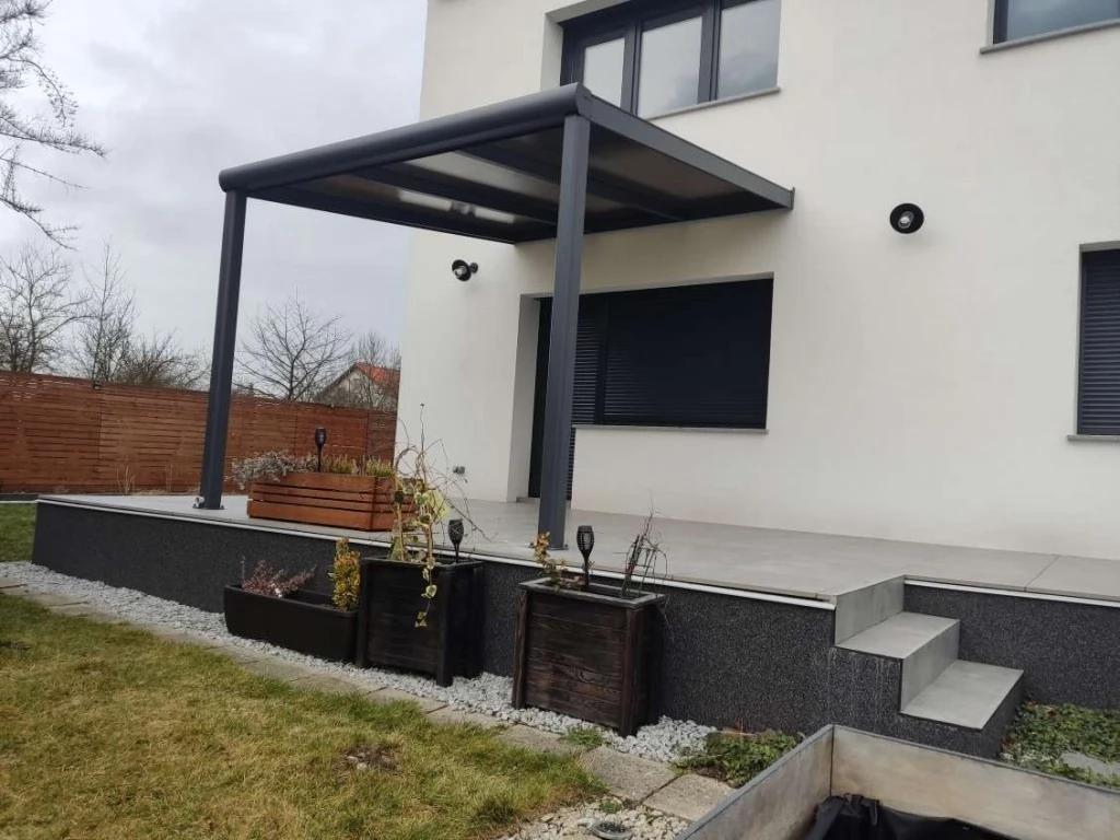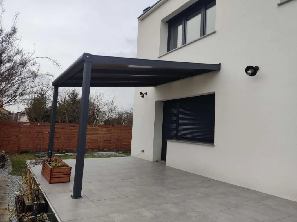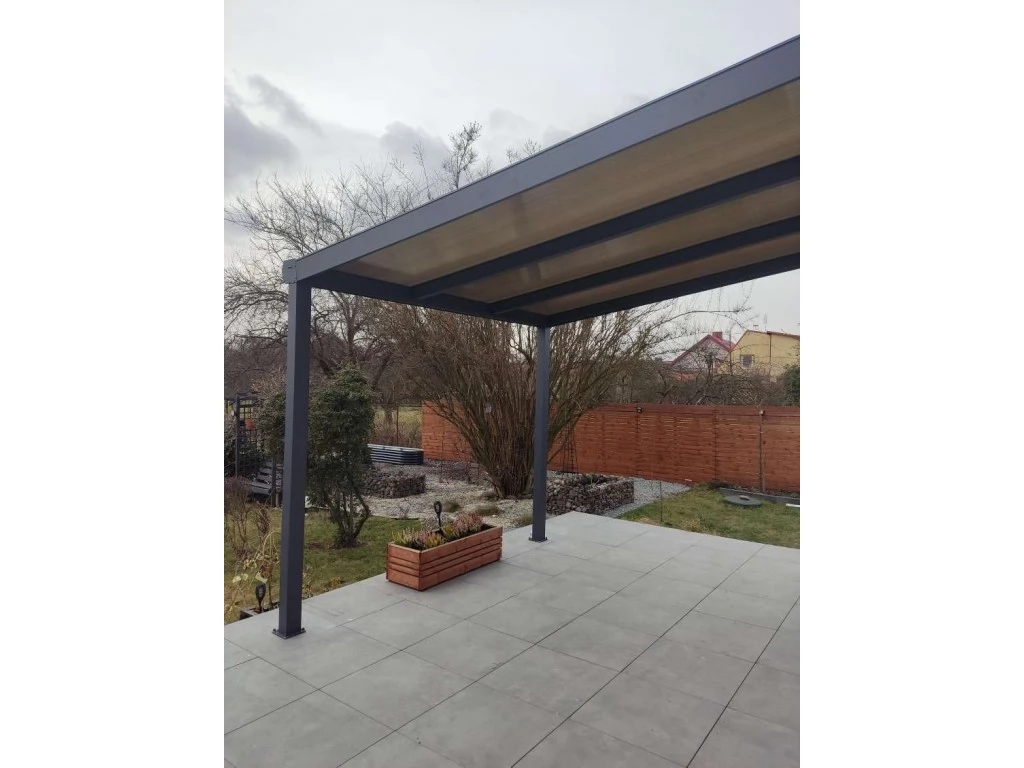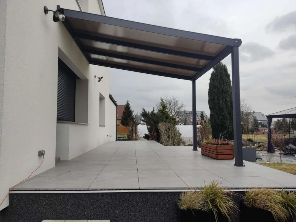 Nowoczesne aluminiowe zadaszenie Modern PRO+ jest wykonane z grubych profili aluminiowych o jeszcze większym przekroju i grubości ścianek oraz szkła laminowanego hartowanego 9,14mm.